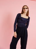 The Come into View top has a full length sleeve and a drape neck which can be worn either on or off the shoulder.