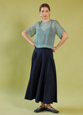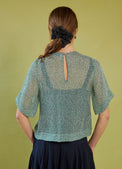 The Moonlight Shadow top is a round neck, 3/4 sleeve top with a single button fastening in the back neck, made in a special vintage silk
